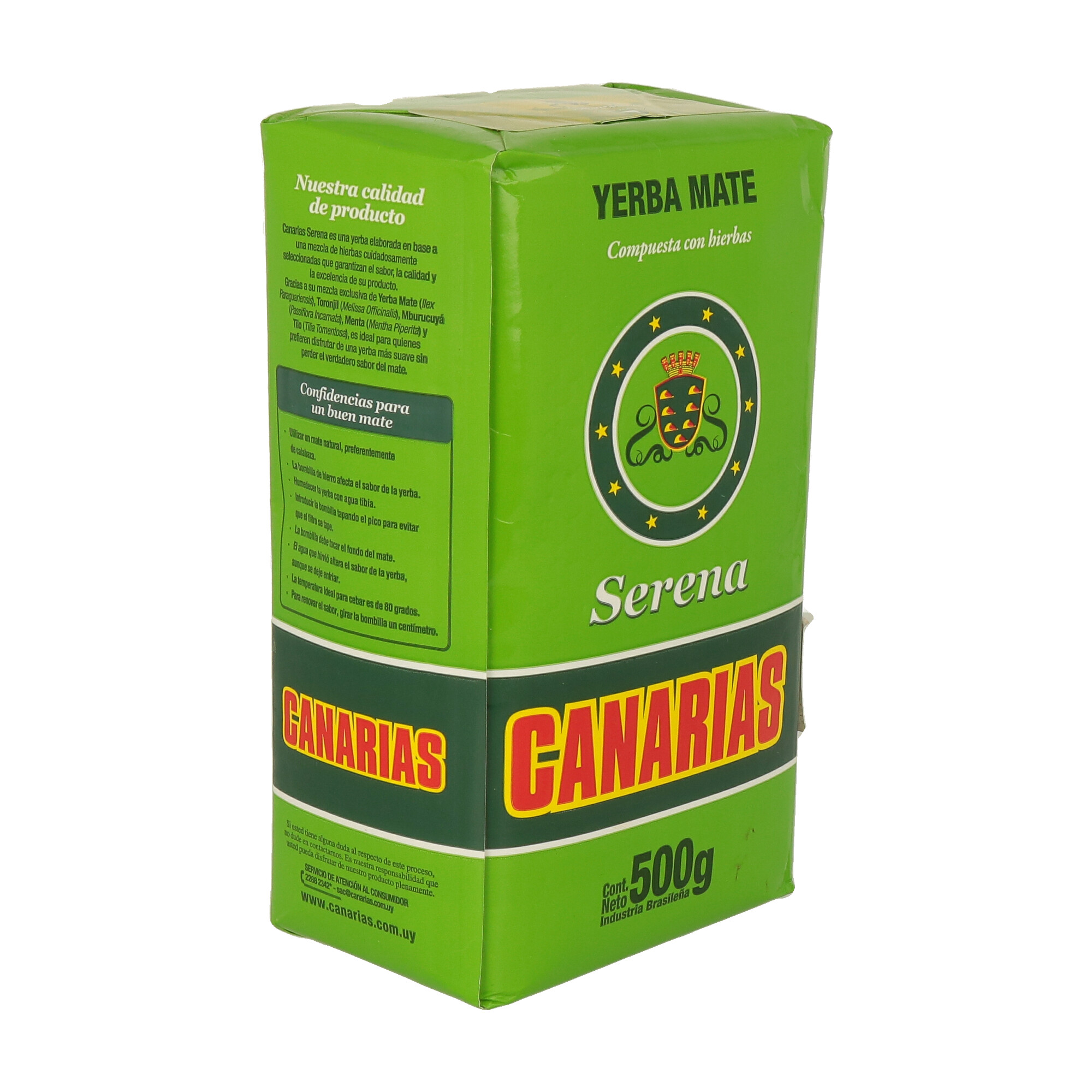 Yerba Mate Canarias Serena es una mezcla equilibrada que combina la tradicional yerba mate Canarias con hierbas naturales como la melisa, tilo y menta.