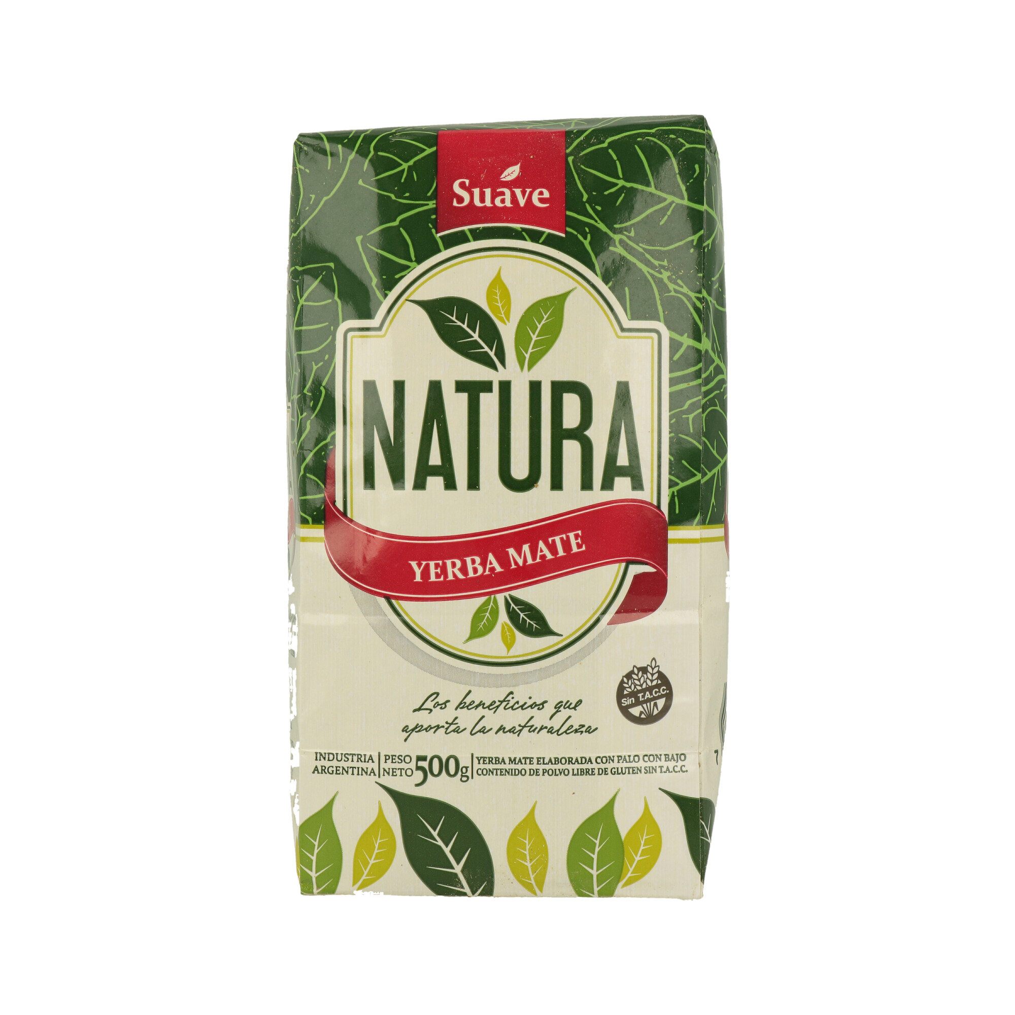 La yerba mate Natura Suave se elabora mediante un cuidadoso proceso de selección y mezcla de hojas y palos, lo que contribuye a un sabor más liviano y una amargura menos pronunciada.